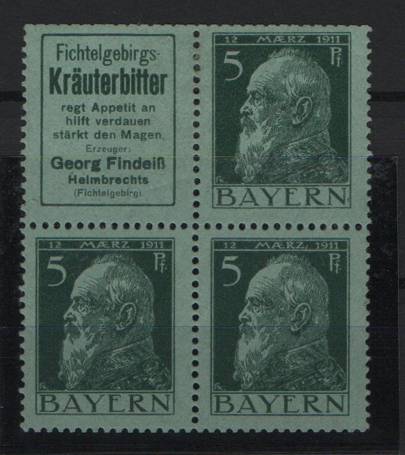 Bayern, 1912 / 13, Zusammendruck Mi.- Nr.: W 1.53, *, (+ Anhang **!), sehr selten!