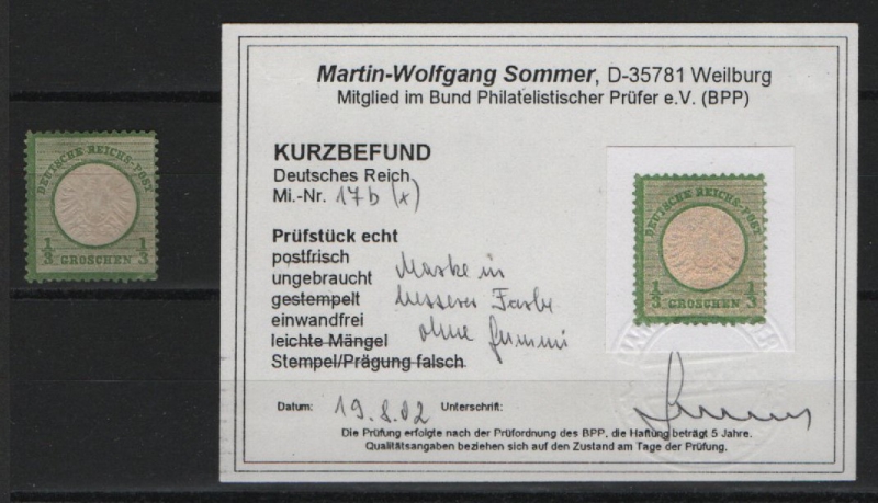 Dt. Kaiserreich, Brustschilder, 1872, Mi.- Nr.: 17 b, (*)! Kurzbefund Sommer BPP! Selten!