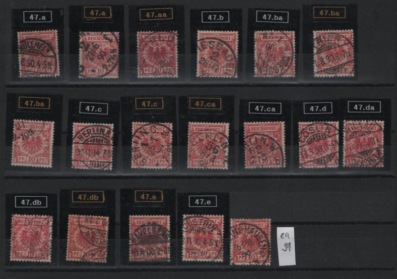 DR, Krone / Adler, ca. 1889- 1900, Mi.- Nr.: 47, alle Farben mit Varianten (18!), je tief(st)geprüft BPP! Kabinett- Luxusstück! Selten!