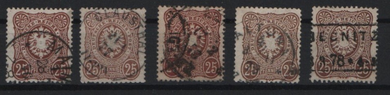 DR, Pfennige, 1875- 79, Mi.- Nr.: 35a, aa, ab, b, + c, gestempelt, alle geprüft BPP! Qualität: Kabinett- Luxus!