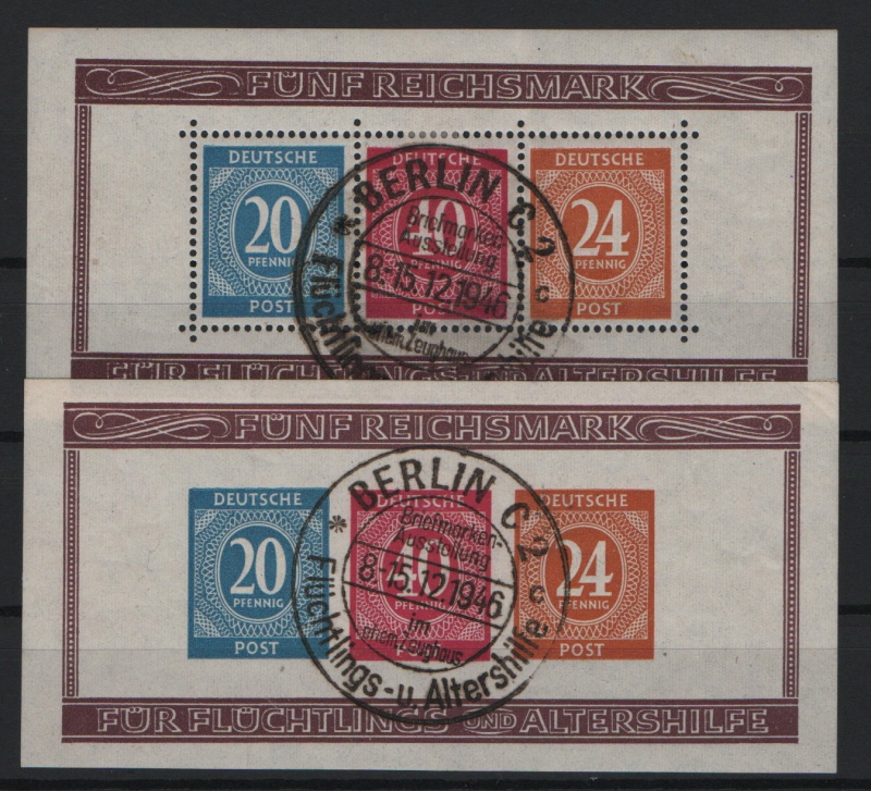 Allierte Besetzung / Kontrollrat, 1946, Mi.- Nrn.: Bl. 12 A / B, gestempelt, je tiefstgeprüft Schlegel BPP! Luxussatz!