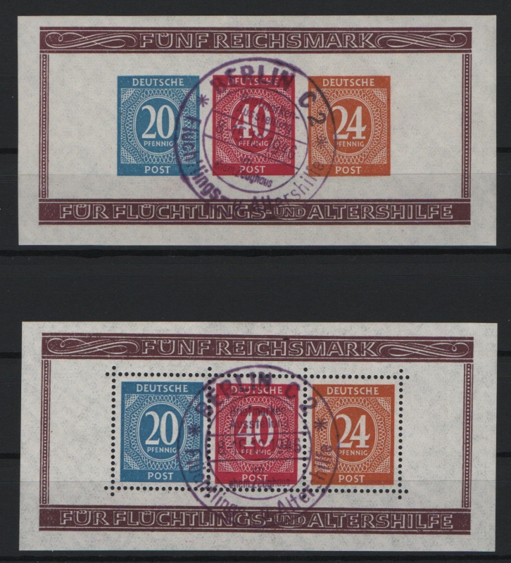 Allierte Besetzung / Kontrollrat, 1946, Mi.- Nrn.: Bl. 12 A / B, gestempelt, je tiefstgeprüft Schlegel BPP! Luxussatz!