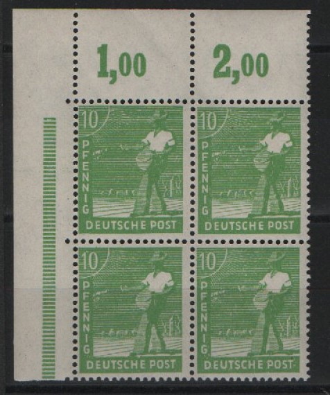 Kontrollrat, 1947, Mi.- Nr.: 946 a, ER- 4er- Block, POR dgz, **, Farbgeprüft Bernhöft / K.- Befund Schlegel BPP! Luxusstück, sehr selten!