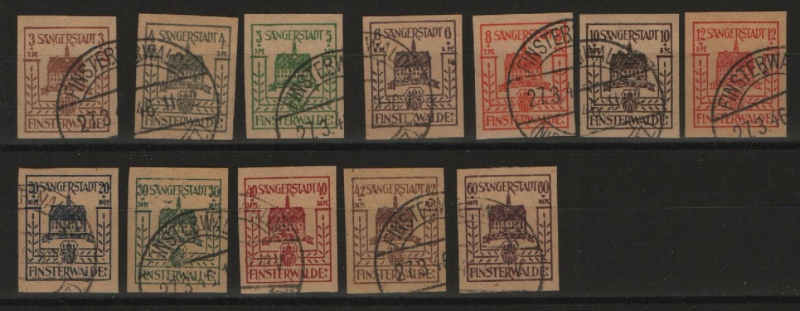 D. - OST, Lokalausgaben, Finsterwalde, 1946, Mi.- Nrn.: 1- 12 , gestempelt! Selten!