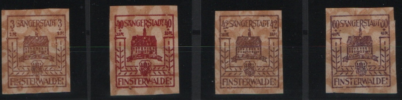 D. - OST, Lokalausgaben, Finsterwalde, 1946, Mi.- Nrn.: 1 aG, 10 G, 11 G + 12 G, **! Sehr selten!