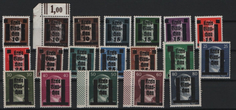 D. - OST, Lokalausgaben, Glauchau, 1945, Mi.- Nrn.: 1- 19! **! Je tief(st)geprüft Zierer BPP! Selten!