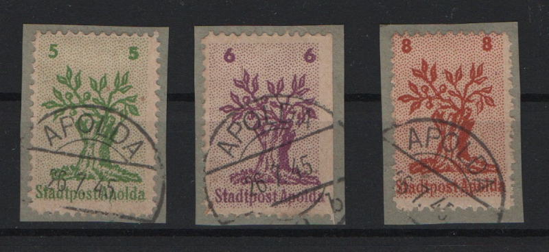 Deutschland- OST, Lokalausgaben, Apolda, 1945, Mi.- Nrn.: 1- 3, je auf Briefstück, Luxusstücke!