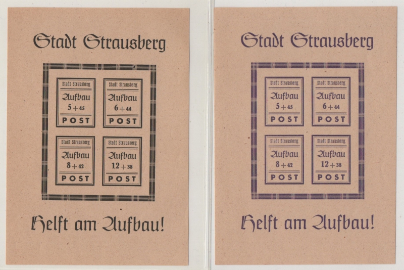 Deutschland- OST, Lokalausgaben, Strausberg, 1946, Mi.- Nrn.: Bl. 1 + 2, **, Kabinettstücke!