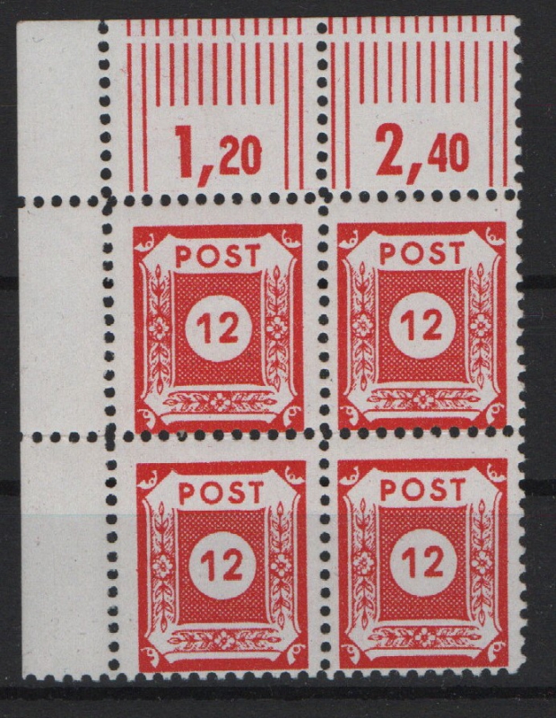 Ost- Sachsen, 1945, Mi.- Nr.: 46 Ea Z (4er- ER!), Postmeisterttr. Großröhrsdorf!, **/*, akt. Fotoattest Dr. Jasch BPP: echt + ....! Kabinettstück!