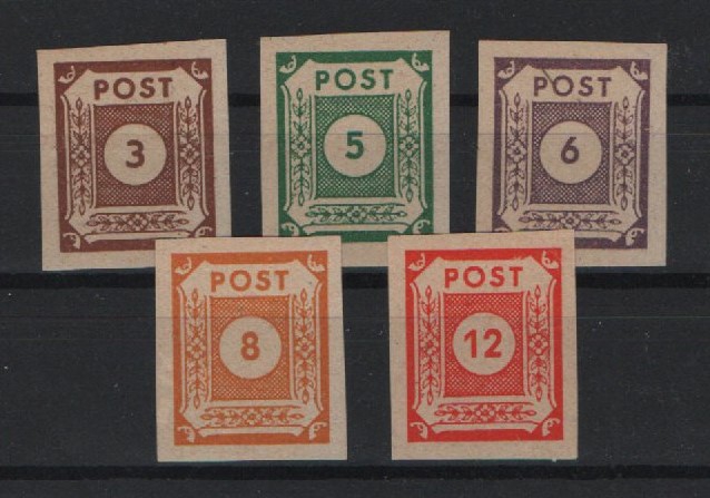 Ostsachsen, 1945, Mi.- Nr.: 56bU- 60aU, **, je tief(st)geprüft Zierer! Sehr selten!