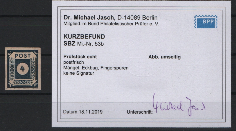 SBZ, Ost- Sachsen, 1945, Mi.- Nr.: 53 b, **, Befund Dr. Jasch BPP "echt + ...! Kabinettstück, selten!
