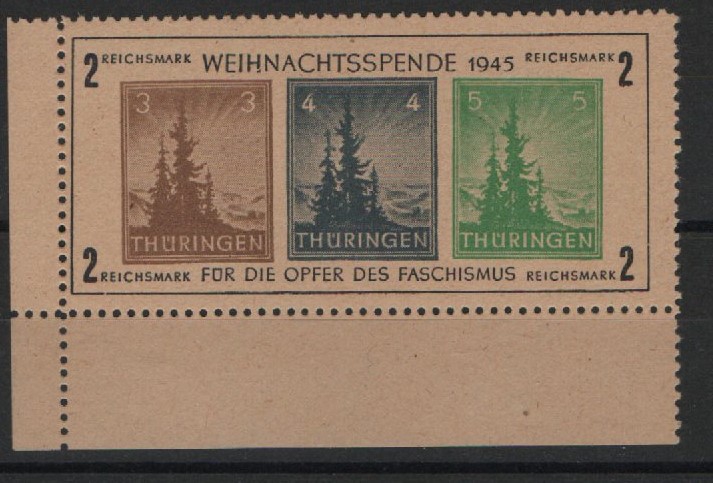 Thüringen, 1945, Bl. 1 t vom ER, **, mit Fotoattest Ströh BPP: echt + einwandfrei, Luxusstück. Sehr selten!