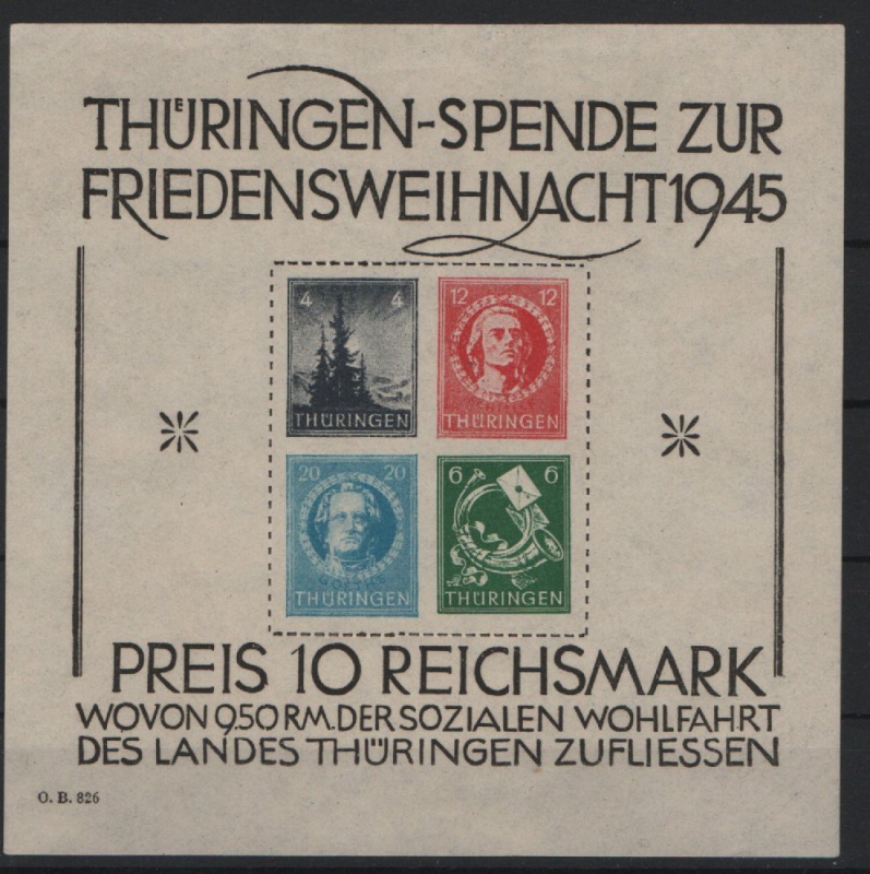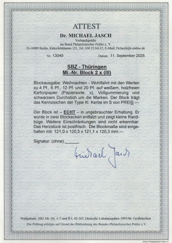 Thüringen, 1945, Bl. 2 x, *, mit akt. Fotoattest Dr. Jasch BPP: "echt + ..., e", Prachtstück! Selten!