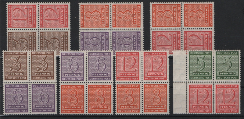 SBZ, West- Sachsen, 1945 / 46, Mi.- Nr.: W Zd 13, 15 + 16, + S Zd 3- 6, je im ** Paar! Qualitätssatz! Selten!