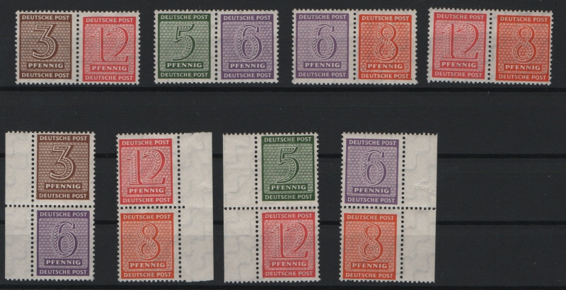 SBZ, West- Sachsen, 1945 / 46, Mi.- Nr.: W Zd 13- 16 + S Zd 3- 6, je **! Qualitätssatz! Selten!