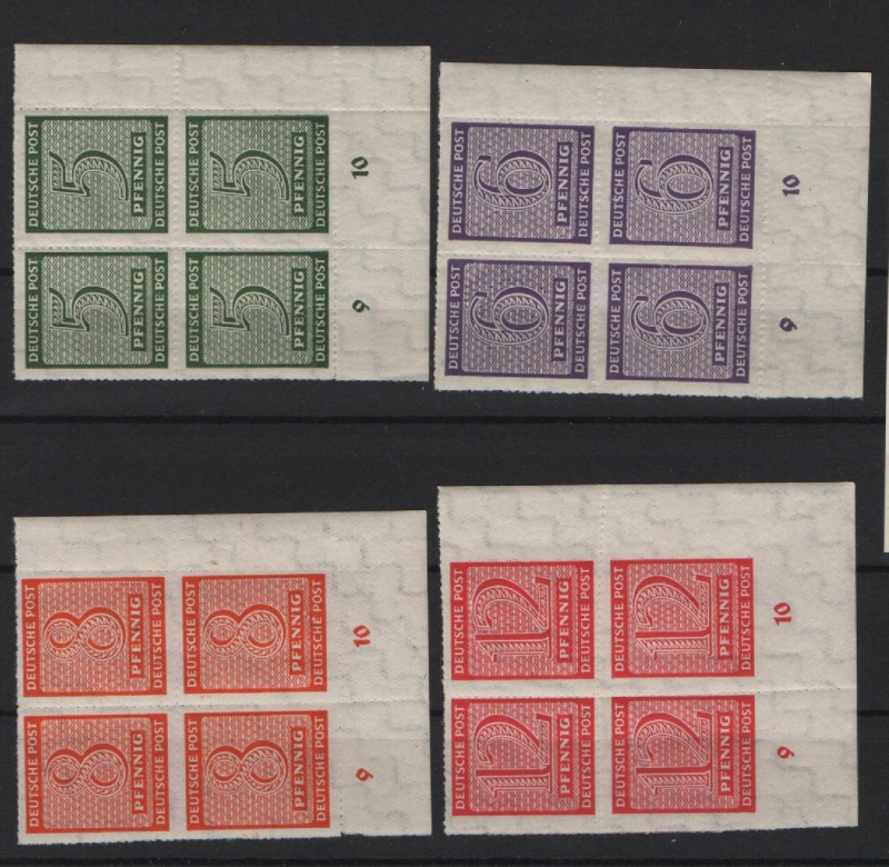 SBZ, West- Sachsen, 1945, Mi.- Nr.: 116 DX - 19 DX, je im ER- 4er- Block, dabei 1x 119 Ur + Uru, **,! Qualitätssatz! Selten
