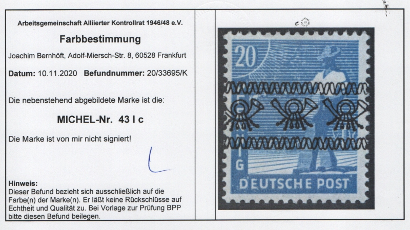 Bizone, 1948, Mi.- Nr.: 43 I c, **, Farbbefund Bernhöft ARGE! Luxusstück!