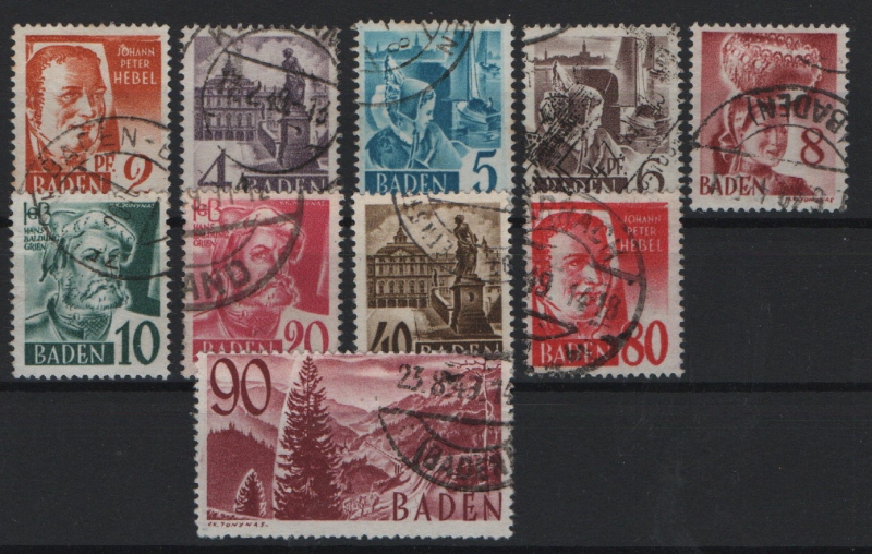 FRZ, Baden, 1948 / 49, Mi.- Nrn.: 28- 37, gestempelt, Kabinettsatz! Selten!