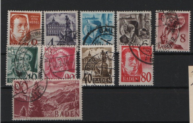 FRZ - Baden, 1948 /49, Mi.- Nrn.: 28 - 37, gestempelt, selten!