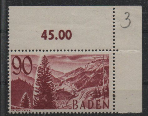 FRZ - Baden, 1949, Mi.- Nr.: 37, **, mit ER! Selten!