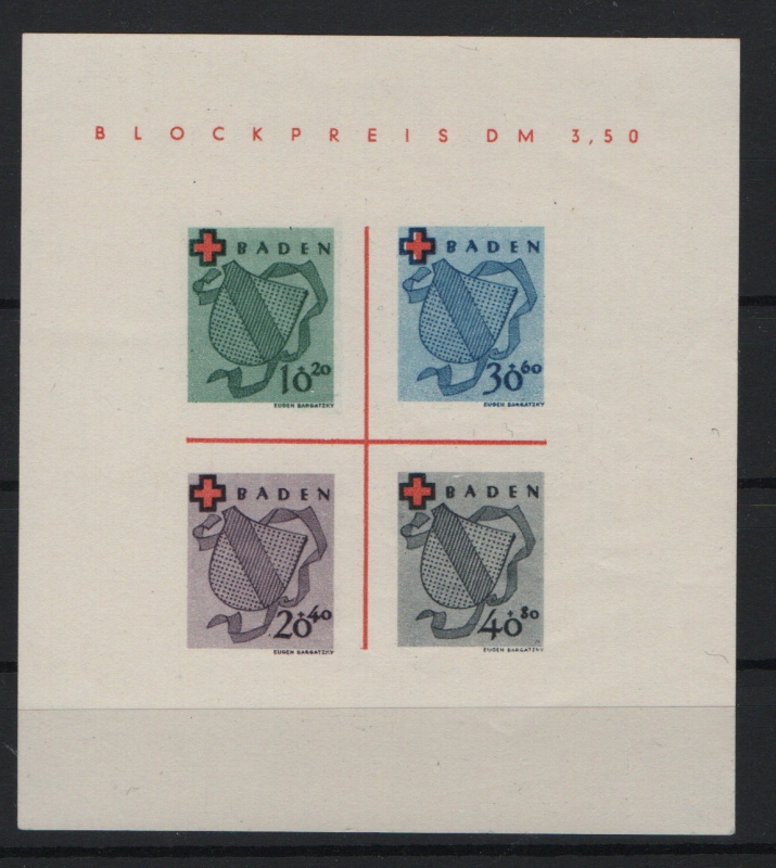 FRZ- Baden, 1949, Mi.- Nr.: Bl. 2, (*) wie ausgegeben, tiefstgeprüft Schlegel BPP!
