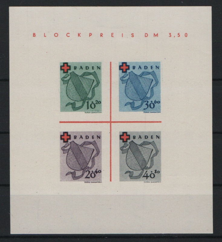 FRZ- Baden, 1949, Mi.- Nr.: Bl. 2, (*) wie ausgegeben, tiefstgeprüft Schlegel BPP!