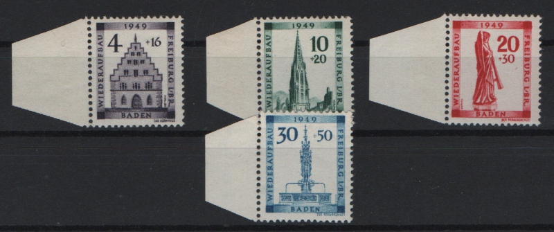 FRZ - Baden, 1949, Mi.- Nrn.: 38A- 41A, **, je vom linken SR! Selten!