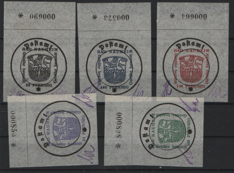 Lockalausgaben, West, 1945, Bad Nauheim, Mi.- Nrn.: 4- 8, je mit OR mit Bogennr.! **! Luxusqualität! Selten!