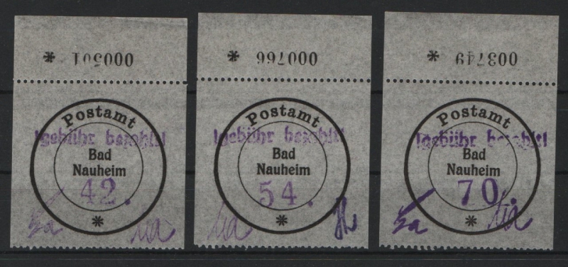 Lockalausgaben, West, 1945, Bad Nauheim, Mi.- Nrn.: A1- A3 (unverausgabte!), je mit OR mit Bogennr.! **! Luxusqualität! Selten!