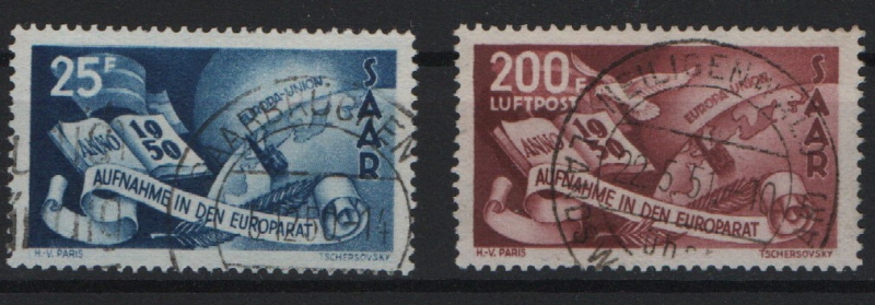 Saarland, 1950, Mi.- Nrn.: 297- 98, gestempelt, 298 tiefstgeprüft Hoffmann BPP / geprüft Schmidt- Ney VP! Selten!