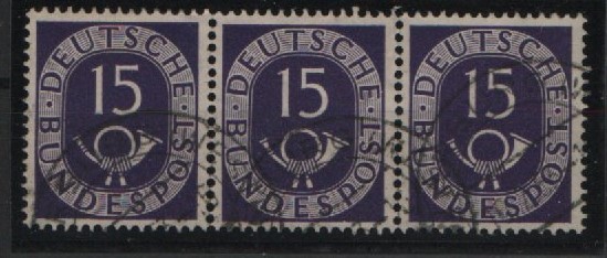 BRD, 1951, Mi.- Nr.: 129 im waager. 3er- Streifen, gestempelt! Gutes Bedarfsstück, selten!