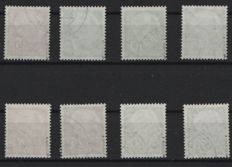 BRD, 1954/57, Mi.- Nrn.: 179- /-186y + 259- 60y, "Der Heuss- Lumogensatz", gestempelt, je tiefgeprüft Schlegel BPP! Luxus!
