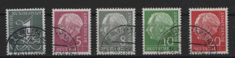 BRD, 1954 /57, Mi.- Nrn.: 179x YII- / 285 YII, Heuss liegendes Wz. in Type II, gestempelt! 1 + 8 Pfg. geprüft Schlegel BPP!