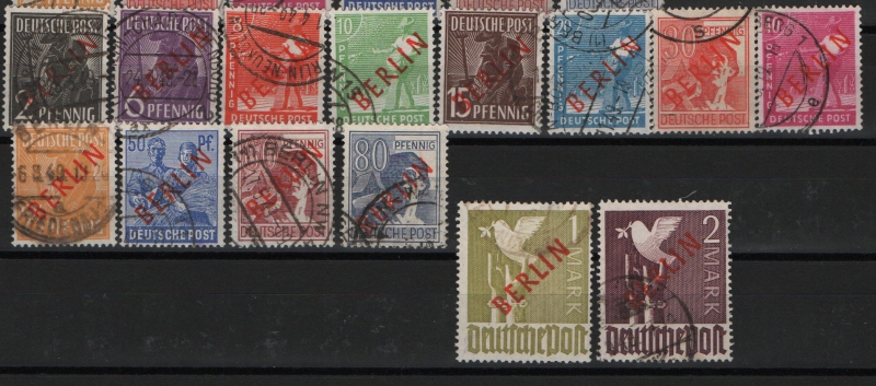 Berlin, 1949, Mi.- Nrn.: 21- 34, Der Rot- Aufdruck- Satz, gestempelt, Bedarfssatz, je altgeprüft / signiert!