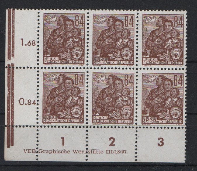 DDR, 1953, Mi.- Nr.: 422 XI DV + 3 anhängende Marken, **, tiefstgeprüft Paul BPP! Luxusstück!