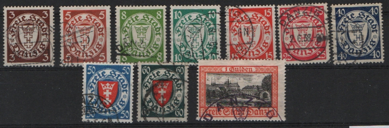 Danzig, 1938, Mi.- Nr.: 289- 97, gestempelt, Kabinettsatz