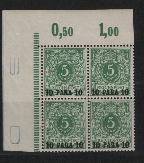 DAP Türkei, 1889 / 90, Mi.- Nr.: 6, (4x), im Er- 4er- Block, l.o.! Qualitätststück mit Showcharakter! Sehr selten!