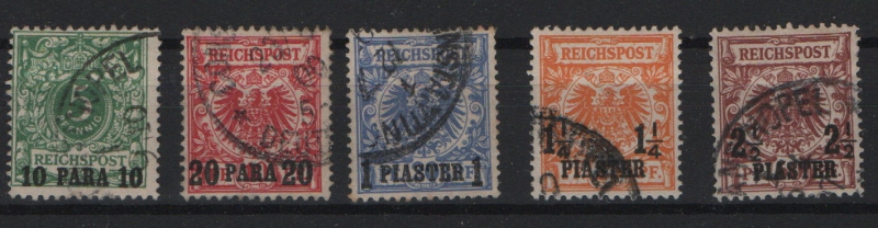 DAP Türkei, 1889, Mi.- Nrn.: 6- 10, gestempelt, Mi.- Nr.: 9 signiert