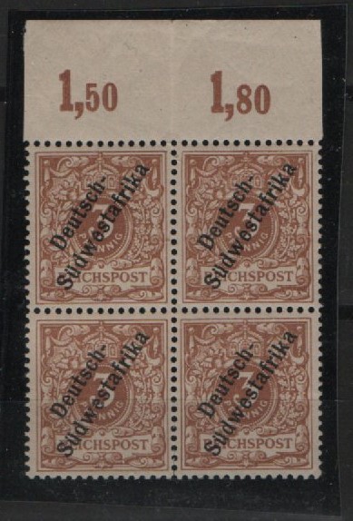Dt. Kolonien, DSWA, 1898, Mi.- Nr.: 5 (4x), im Or- 4er- Block, **, je tief(st)geprüft Jäschke- L. BPP! Selten!
