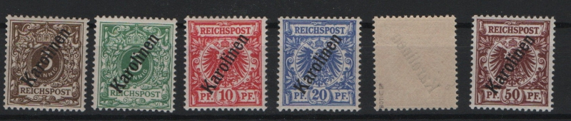 Dt. Kolonien, Karolinen, 1900, Mi.- Nrn.: 1 II - 6 II, **! Mi.- Nr.: 5 tiefstgeprüft Bothe BPP! Selten!