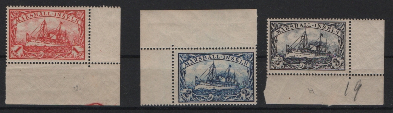 Dt. Kolonien, Marshall- Inseln, 1901, Mi.- Nrn.: 22- 24, **, je vom Er, (je Falzrest auf Er)