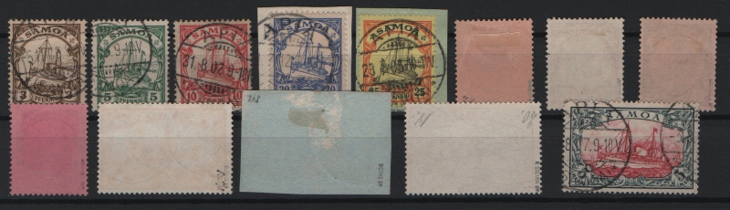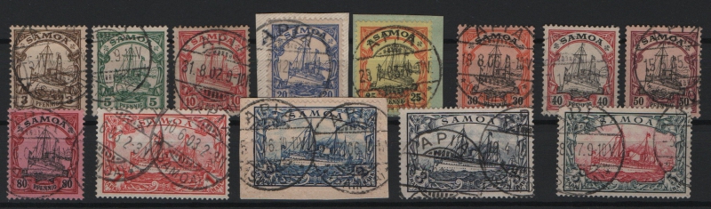 Dt. Kolonien, Samoa, 1900, Mi.- Nrn.: 7- 19, gestempelt, Mi.- Nrn.: 12- 18 je gepr. / signiert (meist BPP) Nr.: 19 mit FA e+e BPP! Sehr selten!