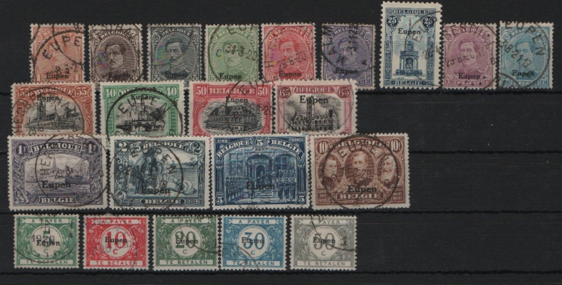 Eupen, 1920, Mi.- Nrn.: 1- 17 + Portomarken, gestempelt, Kabinett- / Bedarfserhaltung, selten!