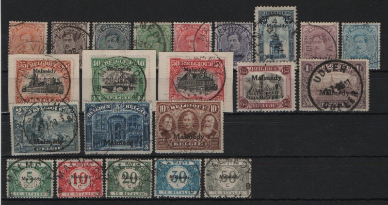 Malmedy, 1920, Mi.- Nrn.: 1- 17 + Portomarken, gestempelt, Kabinett- / Bedarfserhaltung, selten!