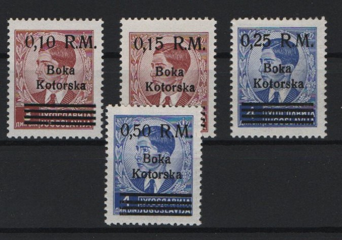 III. Reich, Dt. Bes. II. WK, Kotor, 1944, Mi.- Nrn.: 7 (mit Plf.: IV) + 8- 10, **, Kabinettsatz! Selten!