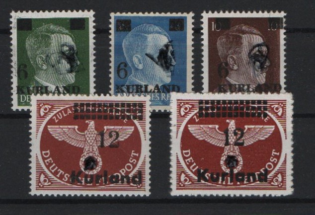III. Reich, Dt. Bes. II. WK, Kurland, 1945, Mi.- Nr.: 1- 4 A/B, **, 1, 2, 4 A + B, je tief(st)geprüft Van Loo BPP! Selten!