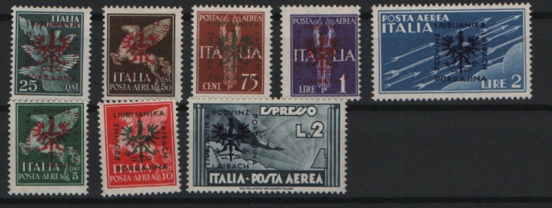 III. Reich, Dt. Bes. II. WK., Laibach, 1944, Mi.- Nrn.: 21- 28, **, Qualitätssatz! Sehr selten!