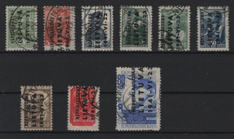 III. Reich / Dt. Bes., Litauen, 1941, Mi.- Nrn.: 1- 9, gestempelt, Kabinettsatz! Selten!