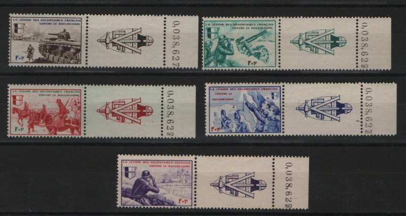 Spendenvignetten / Private Ausgaben, 1942, Mi.- Nrn.: VI- X, je + Zf. rechts und Bogennr.!! Luxussatz! Sehr selten! RR!