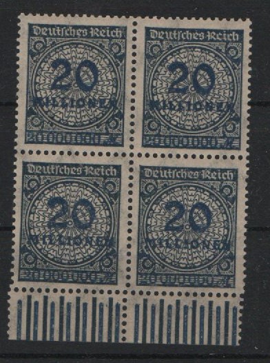 DR, Infla, 1923, Mi.- Nr.: 319 Wb (4x, vom Ur), **, 4-er- Block vom UR, jede Marke tiefstgeprüft Dr. Oechsner BPP!